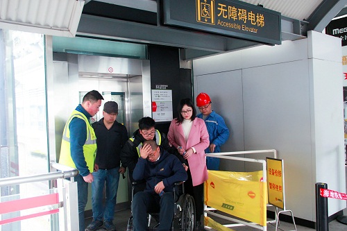 此次直梯困人主要模擬兆豐路在運營過程中2號口無障礙電梯因為設備原因發(fā)生故障,造成轎廂迫停在1樓至2樓中間位置,轎廂內2名乘客雖然無傷亡情況,但無法正常進出,車站對故障設備實施緊急處置并通知相關人員進行搶修,以及開展客流組織引導等工作。