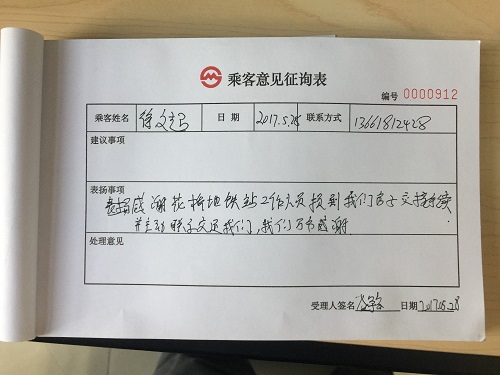 2017年5月28日,花橋站收到了一封來自乘客徐先生的感謝信,信上徐先生對我們車站工作人員認(rèn)真負(fù)責(zé)的態(tài)度表示肯定以及由衷的謝意。