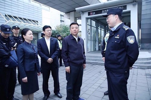 杜小剛同志一行實地走訪了車站出入口、安檢區、軌交站執勤點臨時黨支部、進博會昆山軌交安保指揮部等重點場所,聽取了昆山市局關于軌交安?!拔宓婪谰€”機制建設的情況匯報,實地查看了軌交安檢、軌交聯勤指揮部工作情況。杜小剛高度評價了昆山軌交在進博會前期所做的準備工作并強調,進口博覽會籌備工作已經進入最緊要、最關鍵的最后沖刺階段,對各項安全保障工作一定要進行再研究、再檢查、再落實。