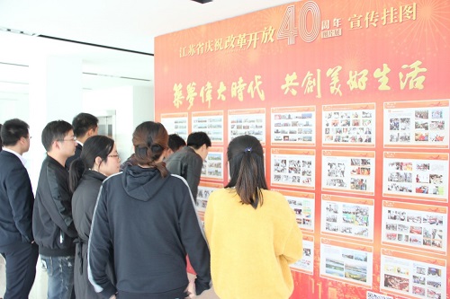 為深入貫徹落實黨的十九大精神,體會黨領導下江蘇省40年來的滄桑巨變,弘揚社會正能量,軌道公司于11月15日起在公司辦公區域展出江蘇省慶祝改革開放40周年宣傳掛圖,公司全體干部職工參觀學習了本次圖片展。