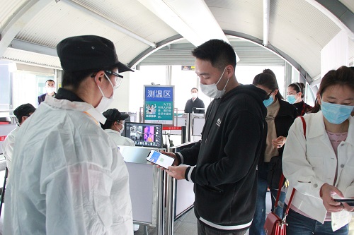 為了做好恢復運營后相關疫情防控工作,軌道公司第一時間制定11號線花橋段恢復運營計劃和預案,在花橋段三站指定出入口(花橋站1號口、光明路站2號口、兆豐路站2號口)設立體溫監測點,配備熱成像體溫儀加手持紅外體溫計集中力量重點排查防疫風險;督促進出站乘客佩戴口罩,主動出示“健康碼”,對進出站乘客逐一進行體溫檢驗。在花橋段三站安排志愿服務,配合測溫人員,做好乘客解釋及乘客引導工作;車站每日至少進行2次全面預防性消毒,對乘客觸及的自助設備視客流情況做到隨時消毒。