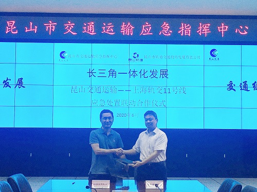 軌道公司聯合昆山市交通運輸應急指揮中心舉行“‘長三角一體化發展’應急處置聯動合作”簽約儀式