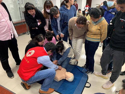 為進一步提高車站員工的安全防范意識和自救互救能力,有效應對工作中遇到的突發情況。11月9日下午,軌道公司邀請紅十字會專業救護講師開展一線員工現場救護培訓合格證取證、復證工作。