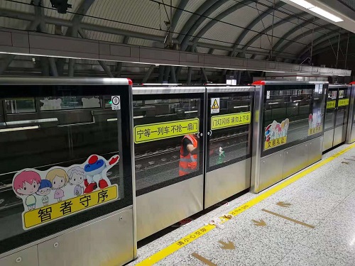 本次工作主要是將花橋段三站內標識不完整、引導不清晰等問題的標識標貼進行集中梳理,再集中完成換新,保證標識指引信息清晰可見,保持車站的標識導向系統更加完善。由于軌行區修復地點的特殊情況,為了不影響列車運營,軌道公司維保科人員與專業人員利用人工點,在做好安全措施的前提下,開展換新工作。