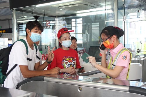 軌道公司落實疫情防控工作的同時關注員工自身安全,不斷加強員工節假日出行的管理工作,提倡就地過節。為提高“國慶”的過節氛圍,軌道公司所有員工上班期間統一佩戴“國慶”特質印花口罩。花橋段三站安排值班人員在車站內對乘客提供問詢服務,同時以廣播形式通知封站、跳站等運營信息,及時告知乘客合理安排出行計劃,確保疫情期間平穩有序輸送游客。