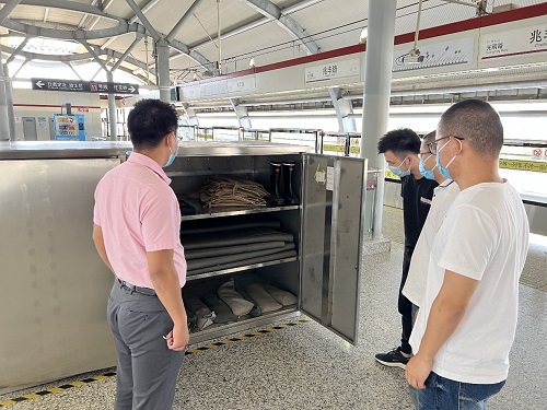 此次安全生產月的主題是“遵守安全生產法,當好第一責任人”。檢查人員首先對車站委外單位疫情防控處置培訓情況進行檢查,要求委外單位嚴格落實相關疫情防控制度,為后期運營恢復后車站疫情防控工作做好充足準備。此外,檢查人員對車站防暑降溫物資配備以及防汛重點位置的物資配備進行盤點,確保相關應急物資準備充足。